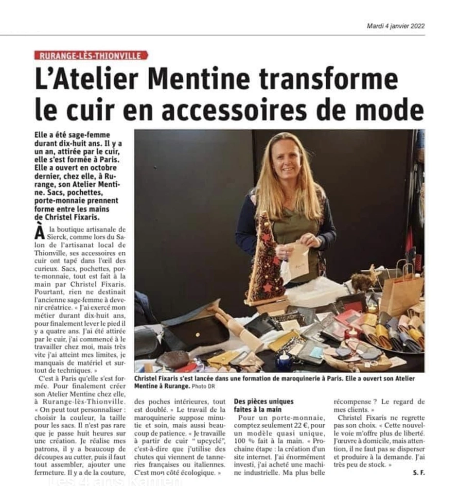 Je suis Christel, artisane maroquinière et fondatrice de la marque MENTINE.