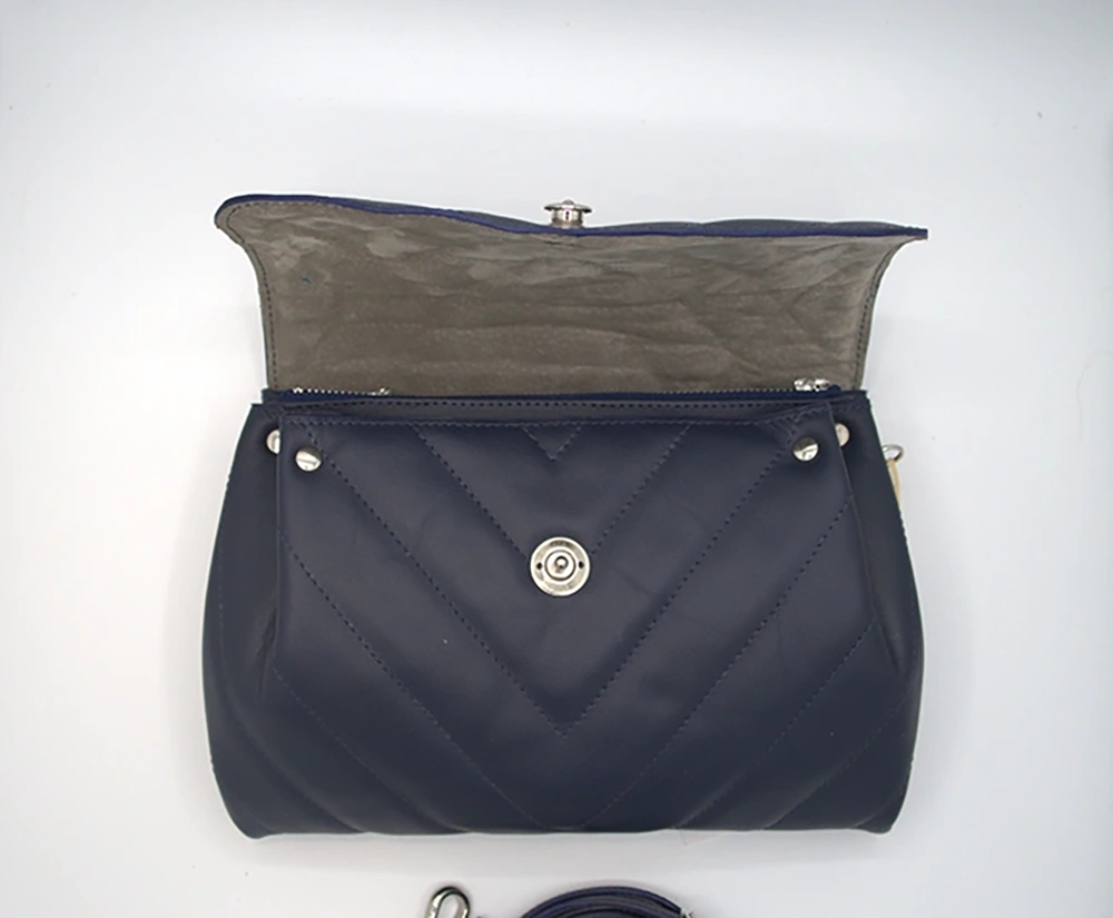 - Cuir de veau pleine fleur lisse bleu marine, sélectionné dans les stocks de maroquinerie de luxe