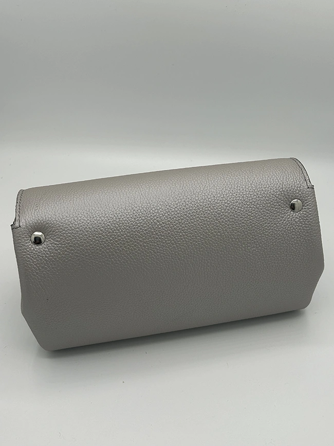- Extérieur : Cuir de veau pleine fleur grainé gris métallisé – cuir italien.