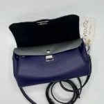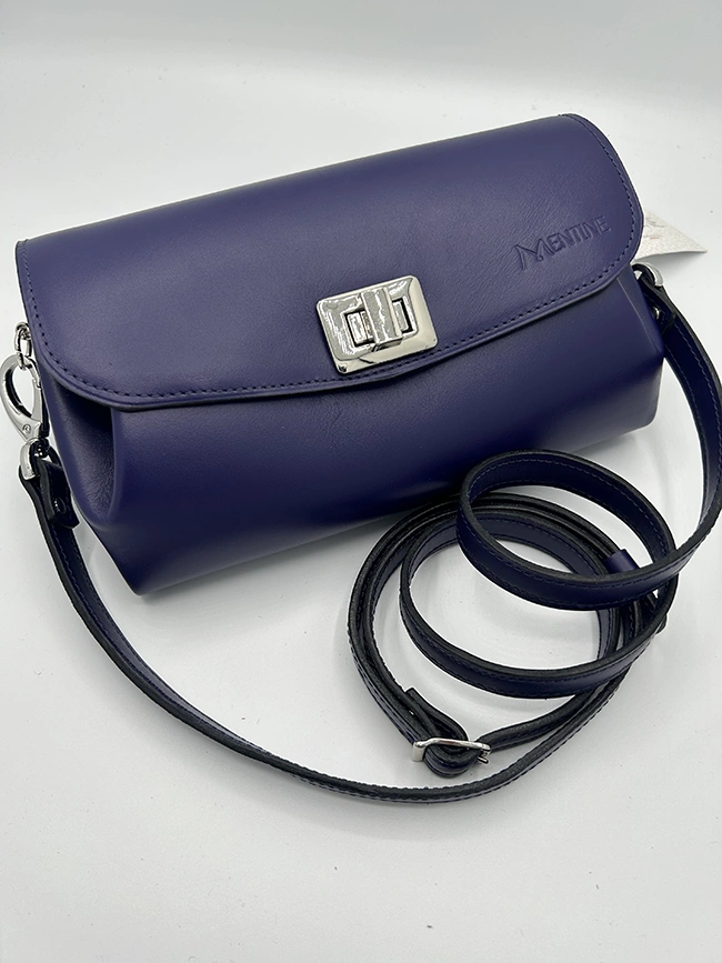 - Extérieur : Cuir de veau pleine fleur lisse violet foncé – cuir italien.