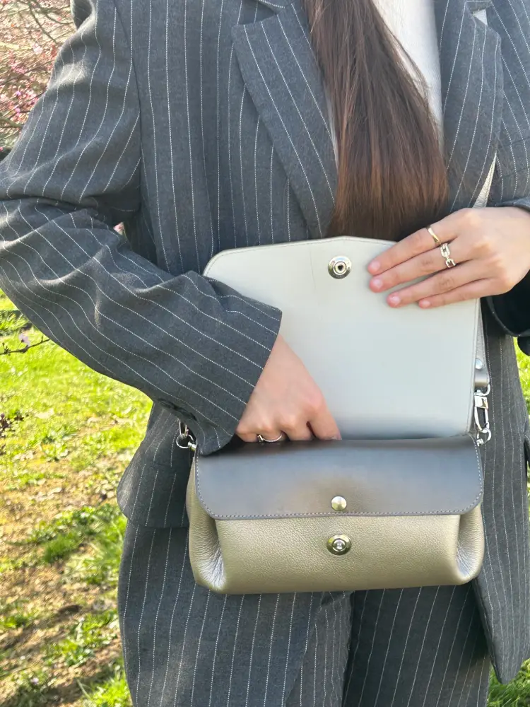 - Fermoir sécurisé en laiton argenté, évitant toute ouverture involontaire.